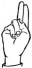 На ћирилици написано РАДНА БЕКРИЋ састоји се из 11 слова [?]. Исписано ћириличном једноручном азбуком за глувонеме: